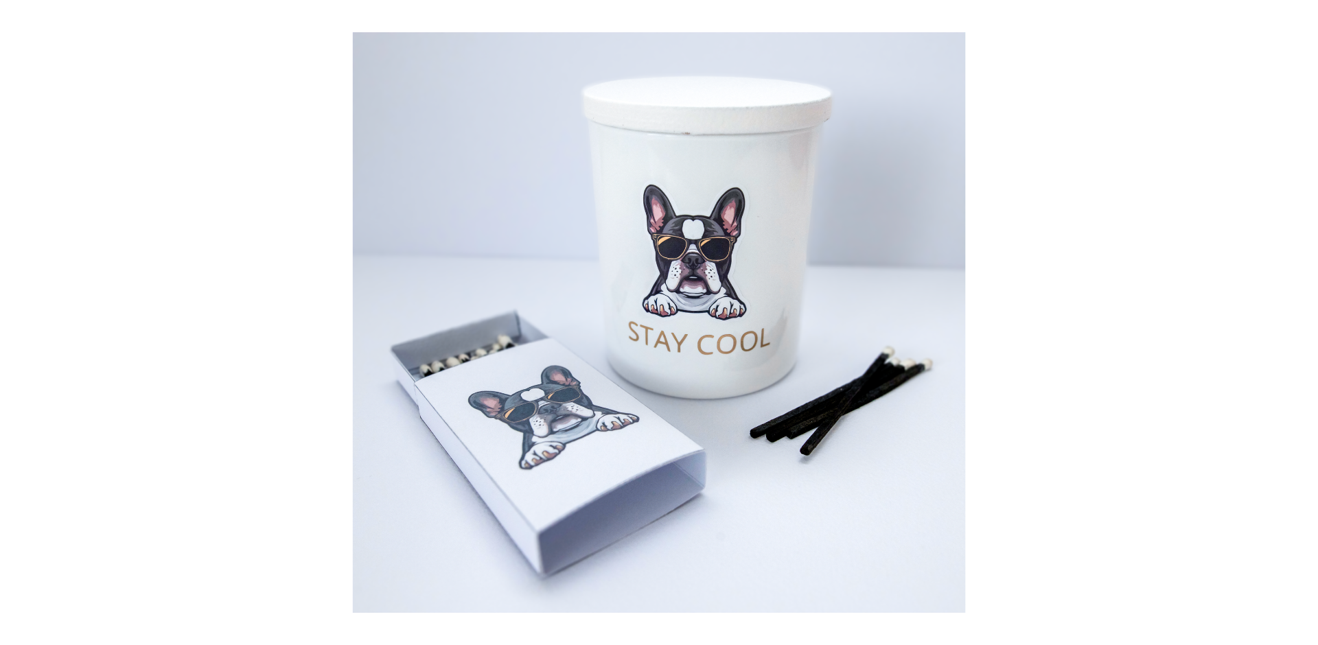 hand made v lesklom bielom skle s viečkom, kvalitnými krabičkami a zápalkami v ladiacich farbách.