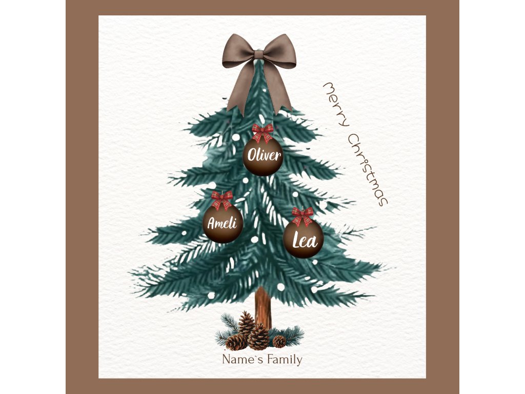 Moderná personalizovaná vianočná karta- Rodinný strom s menami