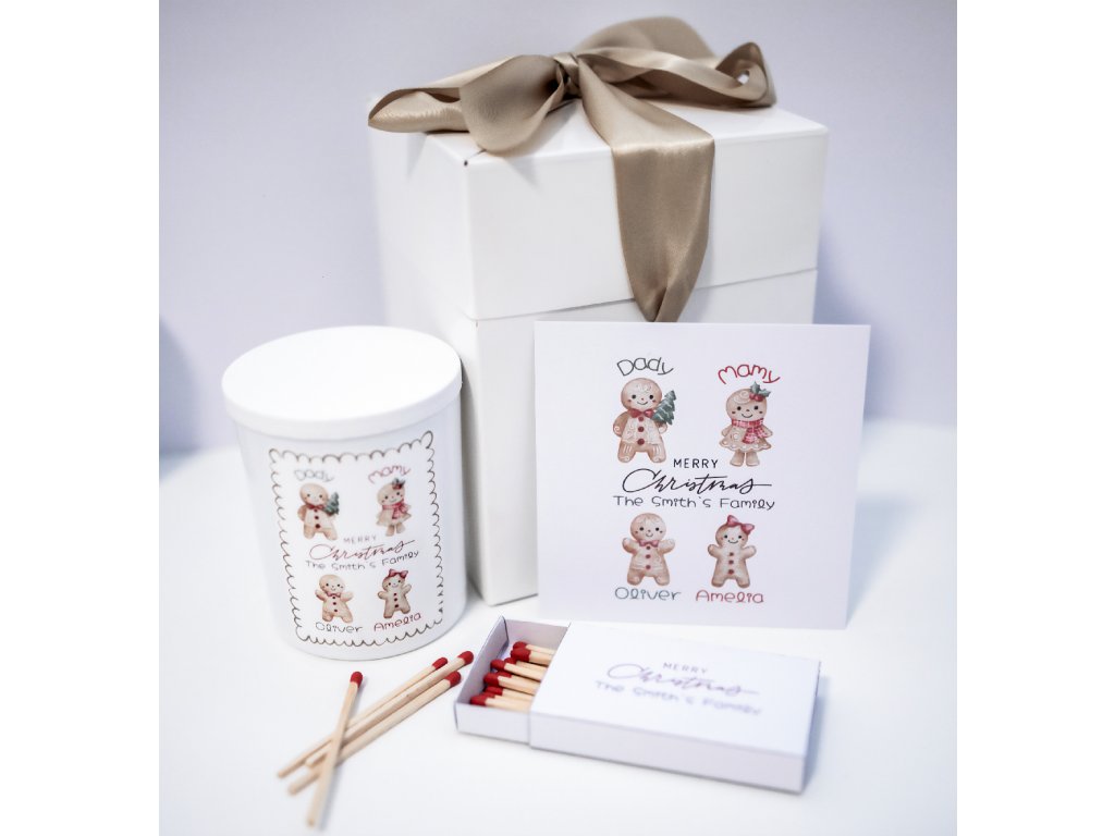 Rodinný Vianočný darčekový set - sójová sviečka zápalky a karta