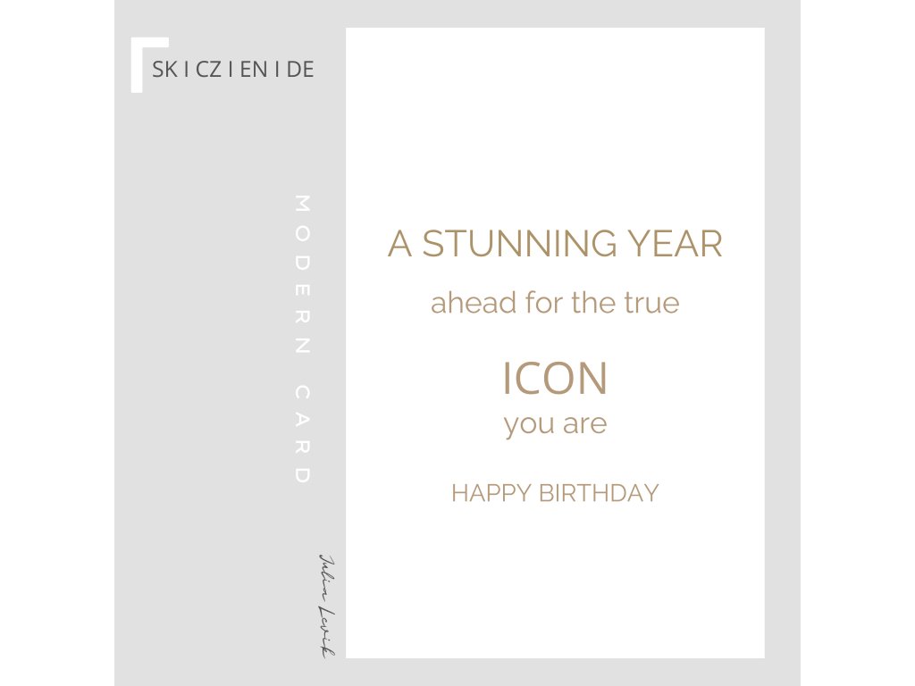 Štýlová gratulačná moderná karta s textom IKONA.